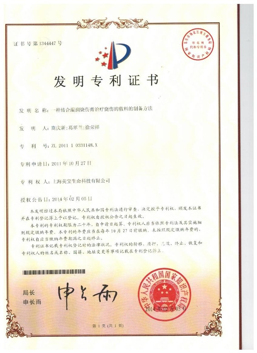 | ZL201110331148.x | 一种结合湿润烧伤膏治疗烧伤的敷料的制备方法 | 查看 |
