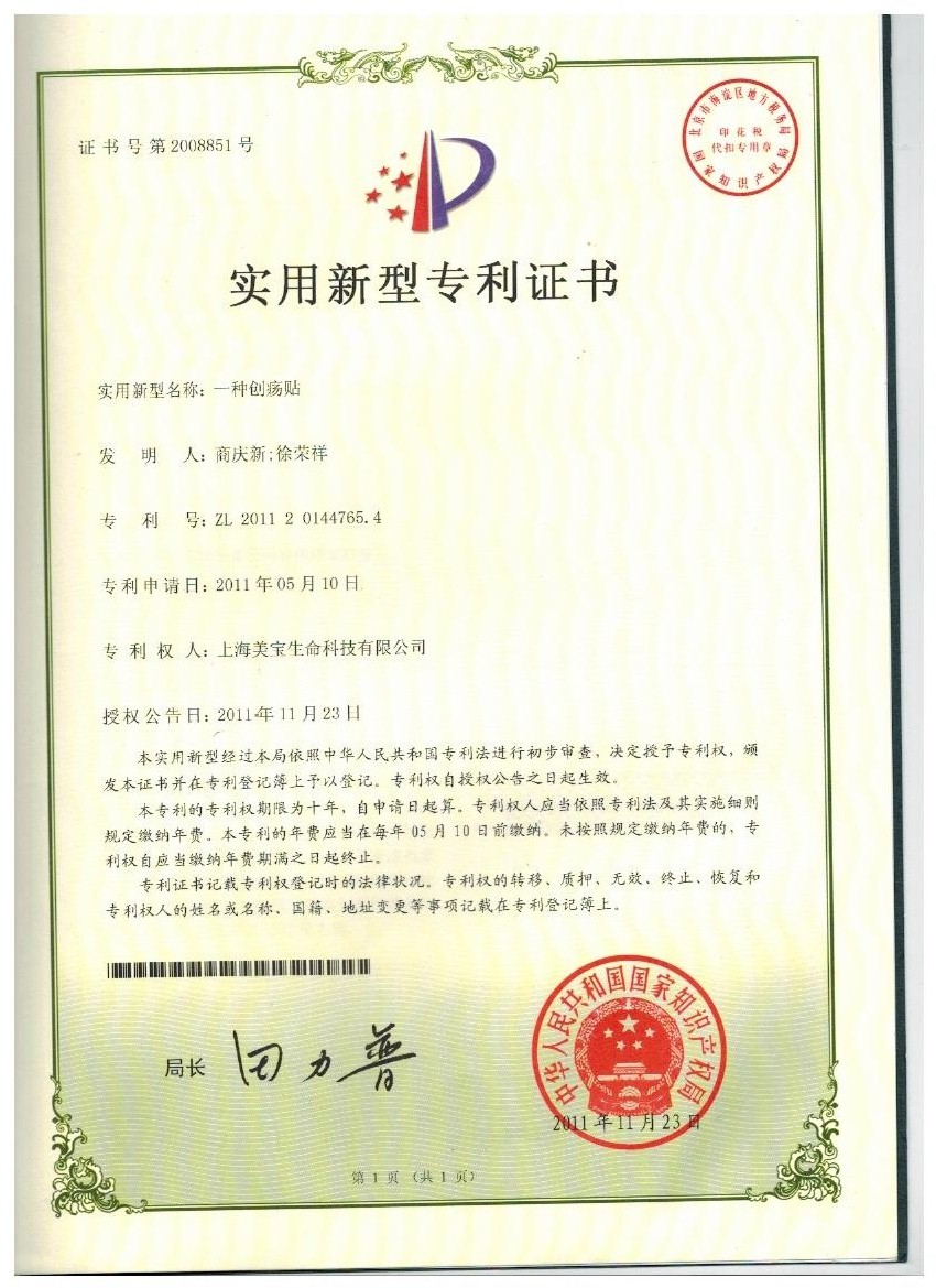 | ZL201120144765.4 | 一种创疡贴 | 查看 |