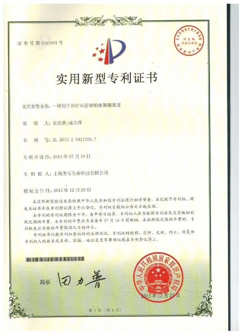 | ZL201320421359.7 | 一种用于治疗血管瘤的弹簧装置 | 查看 |