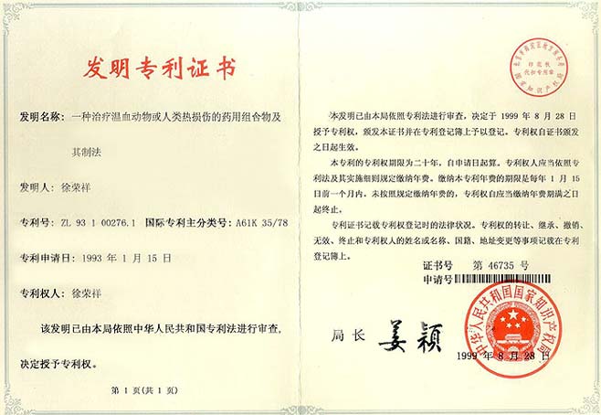 | ZL93100276.1 | 一种治疗温血动物或人类热损伤的药用组合物及其制法 | 查看 |
