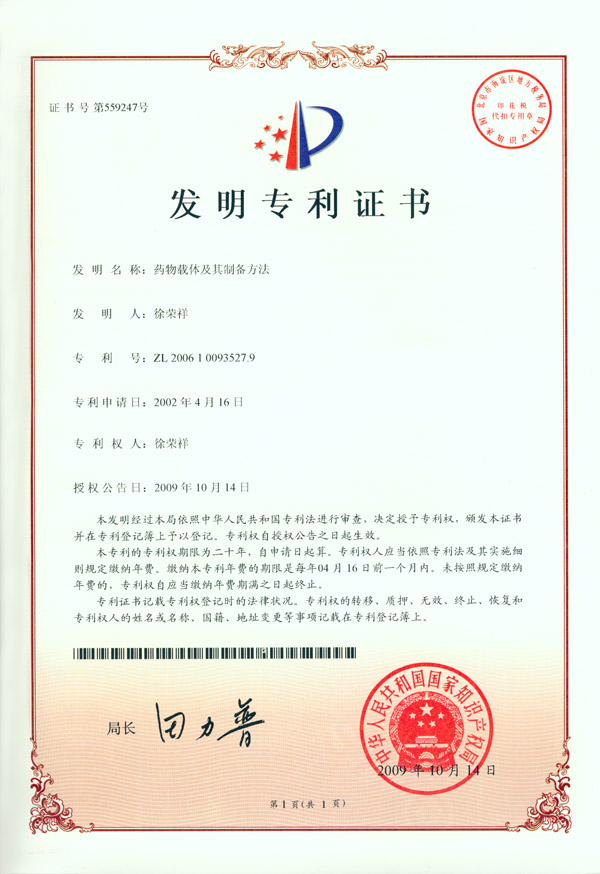 | ZL200610093527.9 | 药物载体及其制备方法 | 查看 |