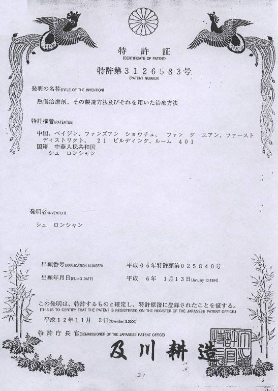 | 0606786(93402890.3) | 一种治疗温血动物或人类热损伤的药用组合物及其制法 | 查看 |