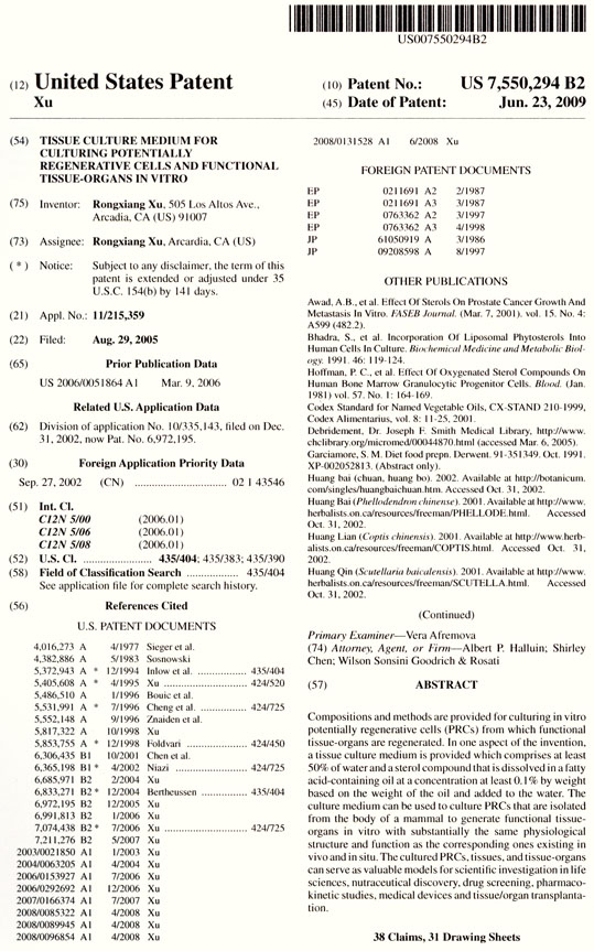 | 7550294 B2 | 潜能再生细胞与功能组织器官体外组织培养基 | 查看 |
