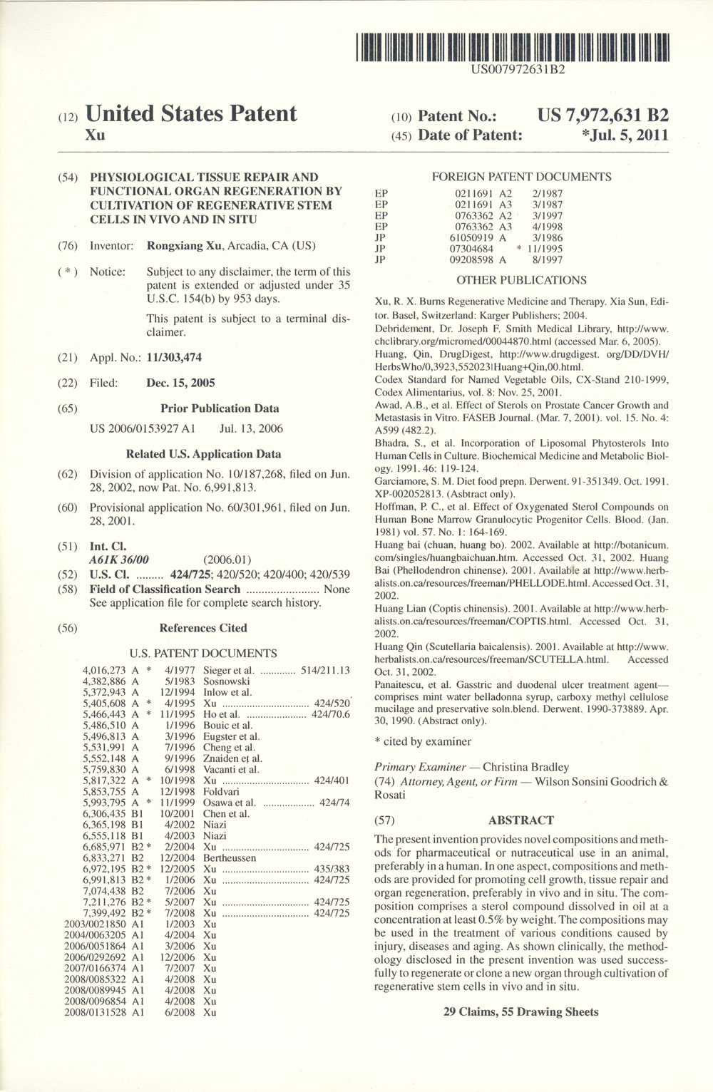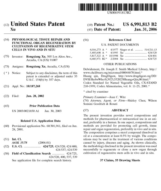 | 7972631 B2 | 通过体内原位培养再生干细胞来完成组织生理性修复和功能器官的再生 | 查看 |
