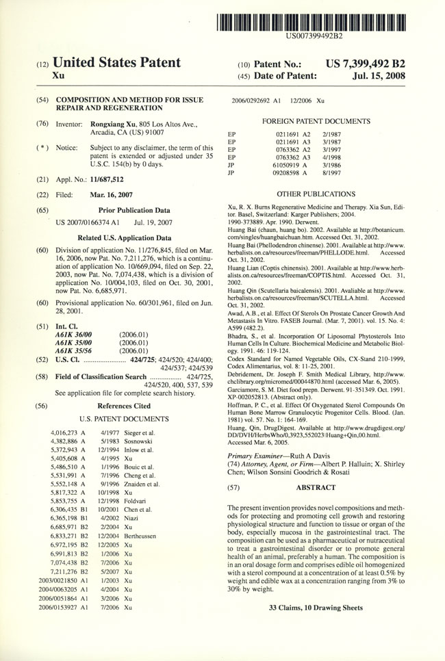 | 7399492 B2 | 人体组织修复再生的组分和方法 | 查看 |
