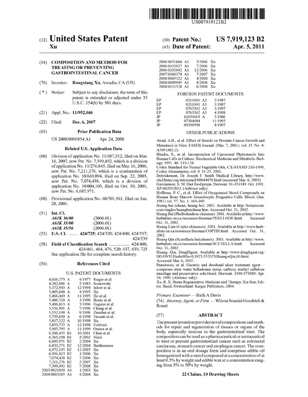 | 7919123 B2 | 治疗与预防胃肠道癌症方法 | 查看 |