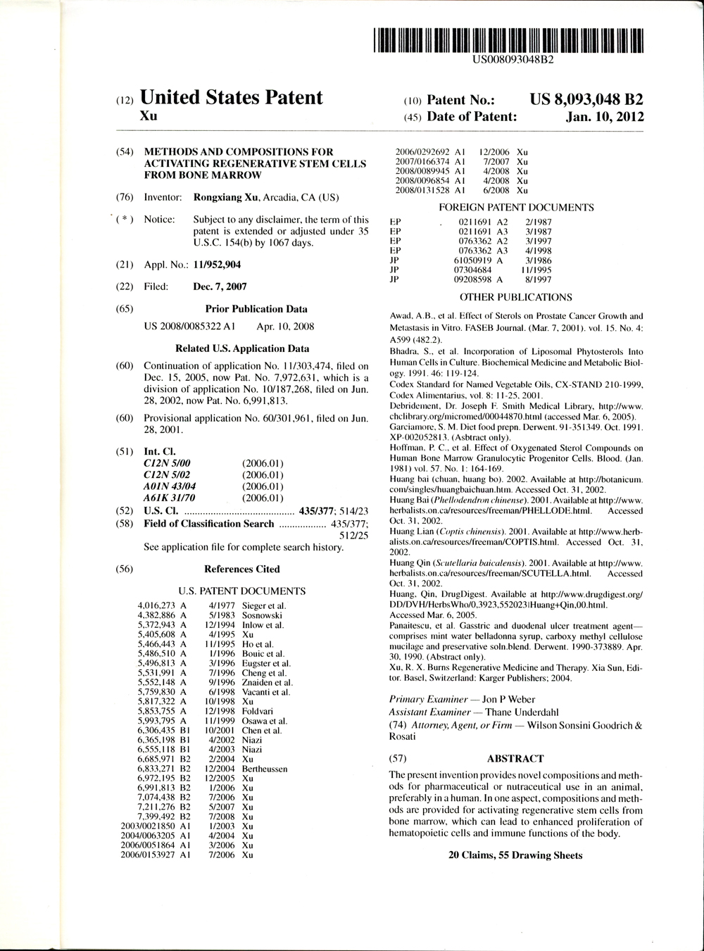 | 8093048 B2 | 激活骨髓组织中再生干细胞的方法和再生物质组合 | 查看 |